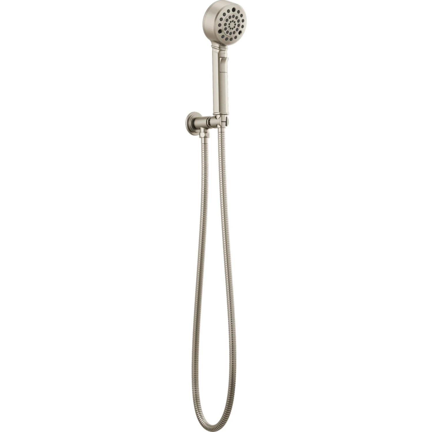 The Invari™ Bath Collection by Brizo® celebrates a modern revival of classic forms. 4-function handshower (H2Okinetic® Spray, Full Spray, Massage Spray and Pause) and 60″ – 82″ stretchable finished metal hose. Wall mount bracket with integrated hose connection.